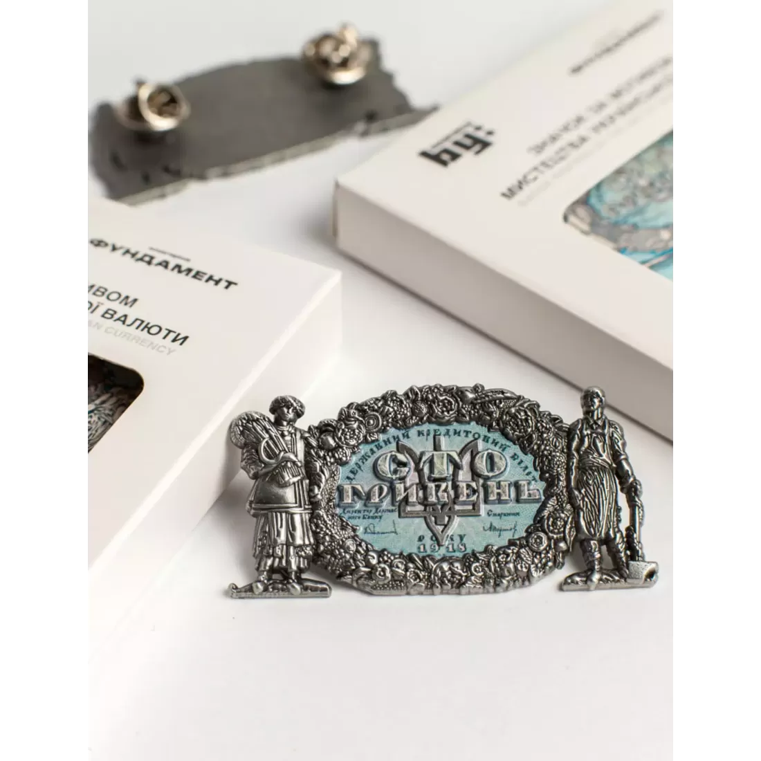 Значок "100 ГРИВЕНЬ" — начок за мотивом державного кредиторного білету