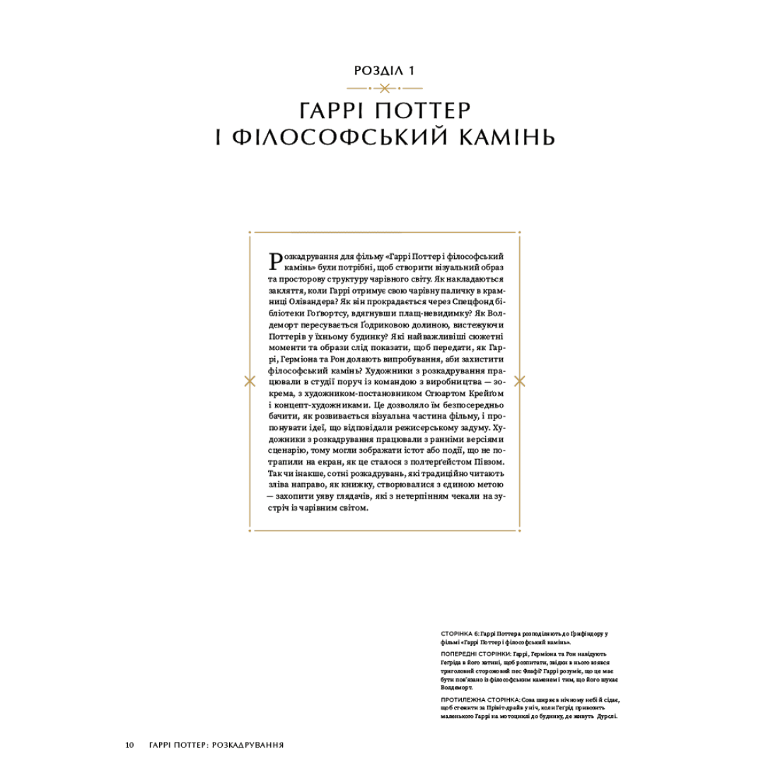 Як створювались легендарні фільми про Гаррі Поттера? Це видання - можливість зазирнути за куліси видатної історії, адже тут зібрані розкадрування до всіх 8 фільмів. Ви вперше побачите, як художники закладали візуальний фундамент магічного світу: від Гоґвортсу й Барлогу до Алеї Діаґон. Саме ці ескізи стали основою візуалізації улюблених локацій, персонажів і незабутніх сцен, які зробили серію культовою.
