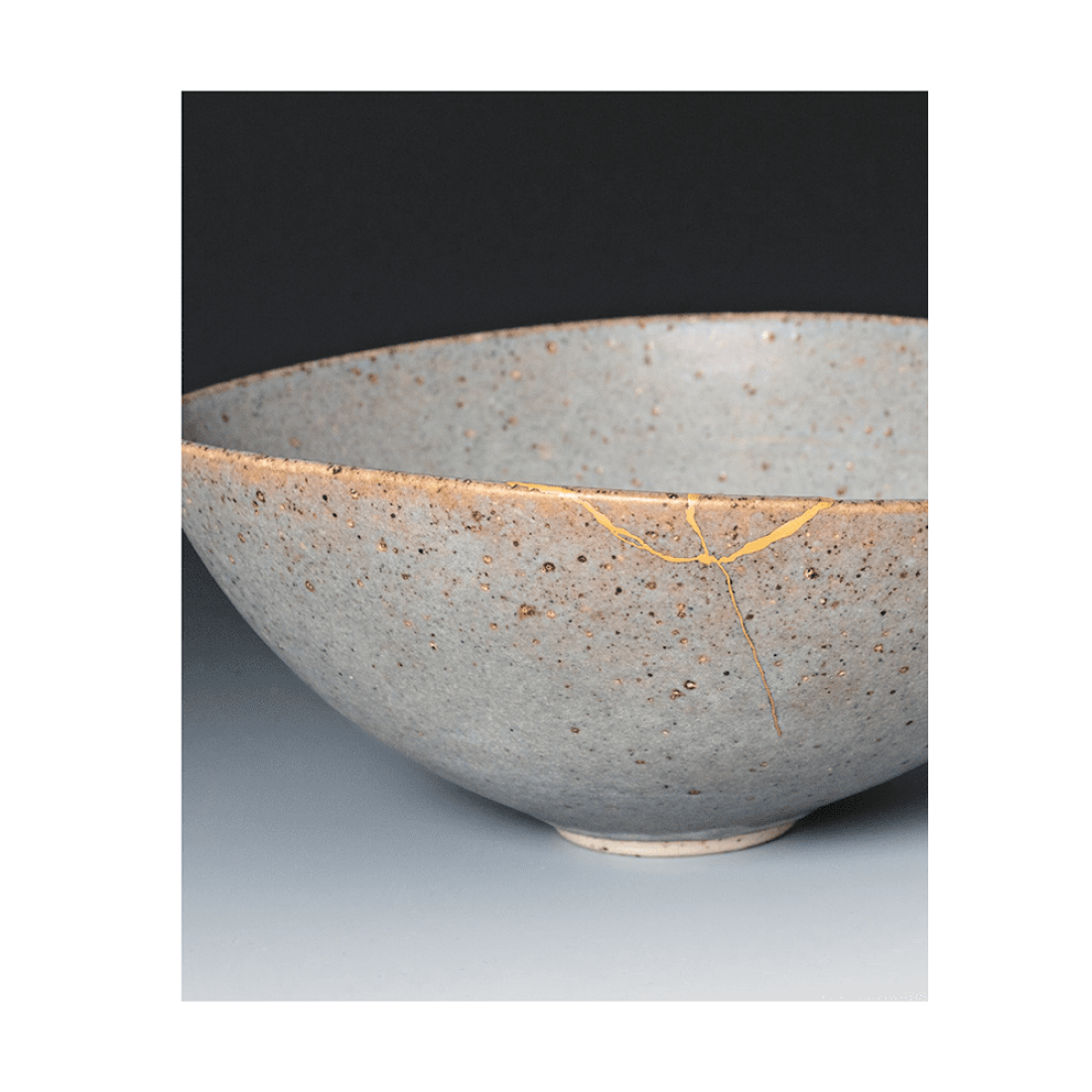 Кінцуґі — японське мистецтво лагодження розбитої кераміки лаком та золотом. Ця техніка вшановує історію предмета, адже замість маскування зламу, оприявлює його і робить красивим. Тож розбита річ стає ще ціннішою.