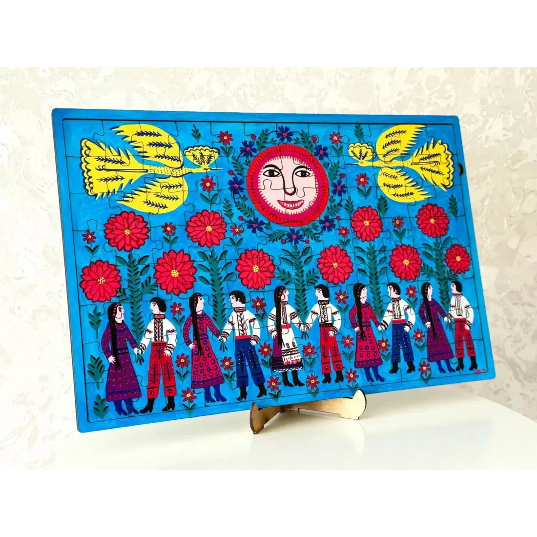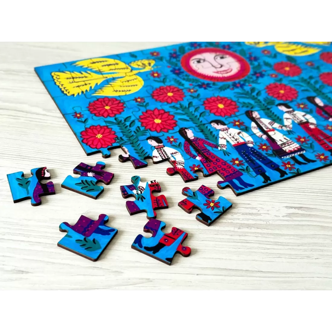 Дерев’яний пазл в рамці «Наша Армія, Наші Хранителі» створено за мотивами картини Марії Примаченко - однієї з найвідоміших українських художниць. Її роботи відзначаються яскравими кольорами, казковими істотами та символами, які зрозумілі як дітям, так і дорослим. Збираючи цей пазл, Ви торкаєтесь унікального художнього світу, де поєднано народні мотиви, фантастичне мислення й неповторний стиль, що вирізняє творчість Марії Примаченко серед інших.