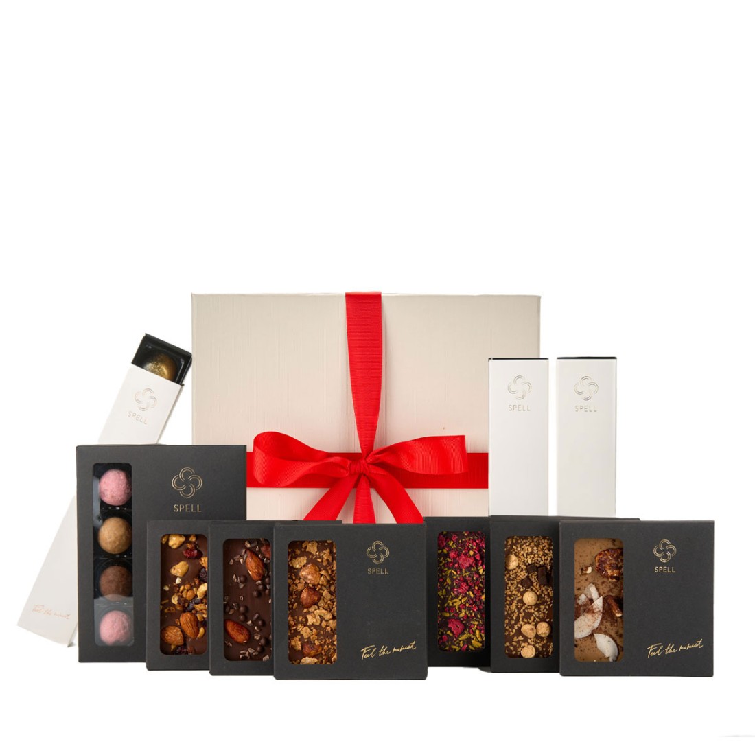 Тропічне асорті цукерок з шаленим дизайном, п'янкі цукерки зі смаком кава-віскі, просеко та бренді в поєднанні з соком квітки гібіскусу. Трішки карамельного асорті та плитки шоколаду: від молочного з горіхами до темного з цитрусом та сушеною малиною.