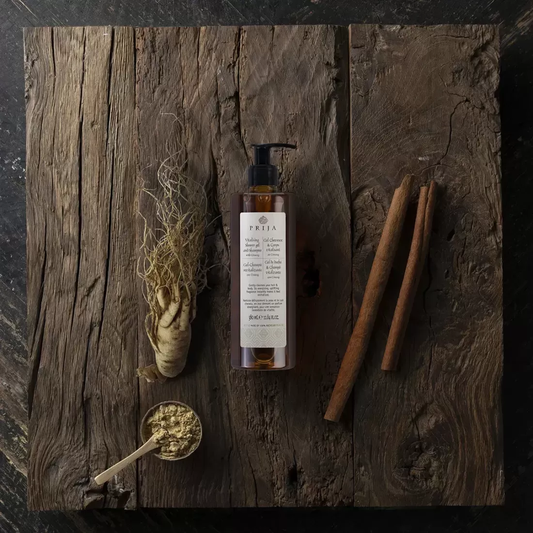 Аромат Prija дарує миттєве відчуття бадьорості та гарного самопочуття у всьому тілі. Збагачений екстрактом женьшеню. Тонізуючі властивості цієї рослини добре відомі на Сході протягом багатьох століть, адже екстракти з його коренів відновлюють та освіжають шкіру.