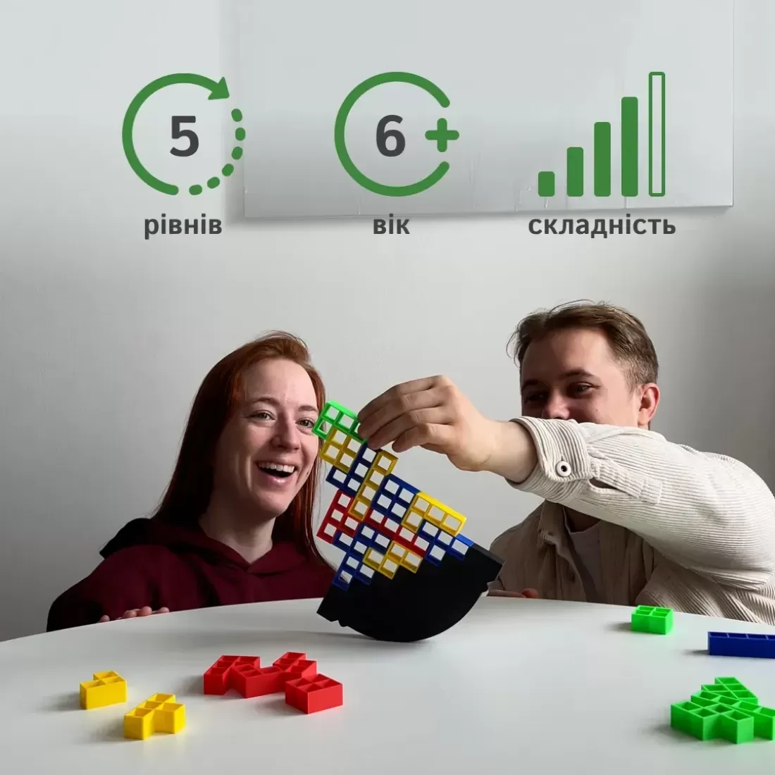«Балансир» – це динамічна настільна гра, яка розвиває координацію, концентрацію та витримку. Простота правил робить її доступною для всіх, а напружені моменти викликають щирі емоції та бажання зіграти ще раз!