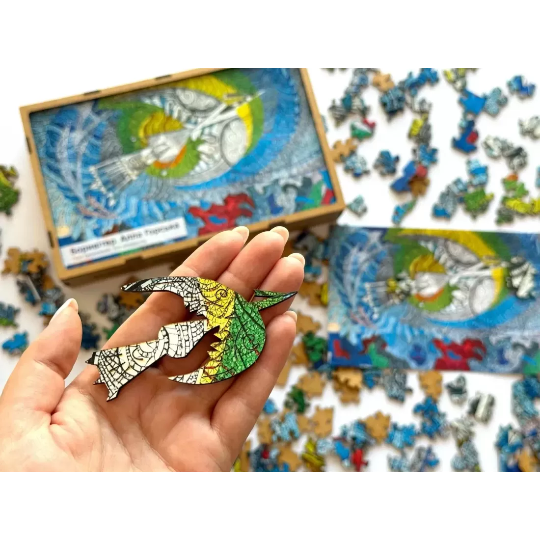Цей пазл присвячено мозаїці «Боривітер» — шедевру української монументалістики із зображенням пустельного сокола — великого птаха, що символізує стійкість та непокору стихіям у боротьбі з потоками вітру. Складаючи пазл, ви можете символічно відновити зруйновану мозаїку та вивчити її до найменших деталей. Пазл створено у співпраці з Благодійною організацією «Фонд Алли Горської та Віктора Зарецького». Автор фото мозаїки: Станіслав Іванов.