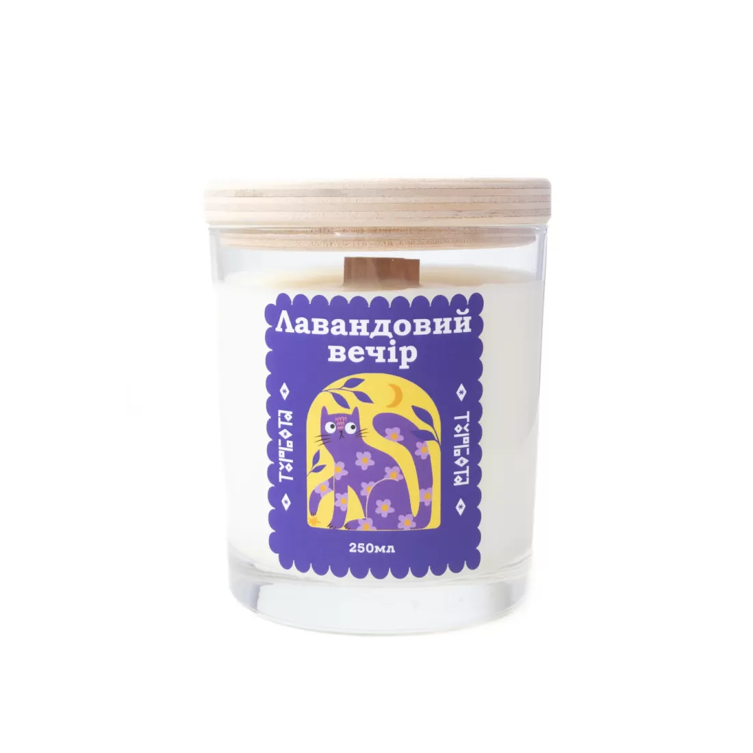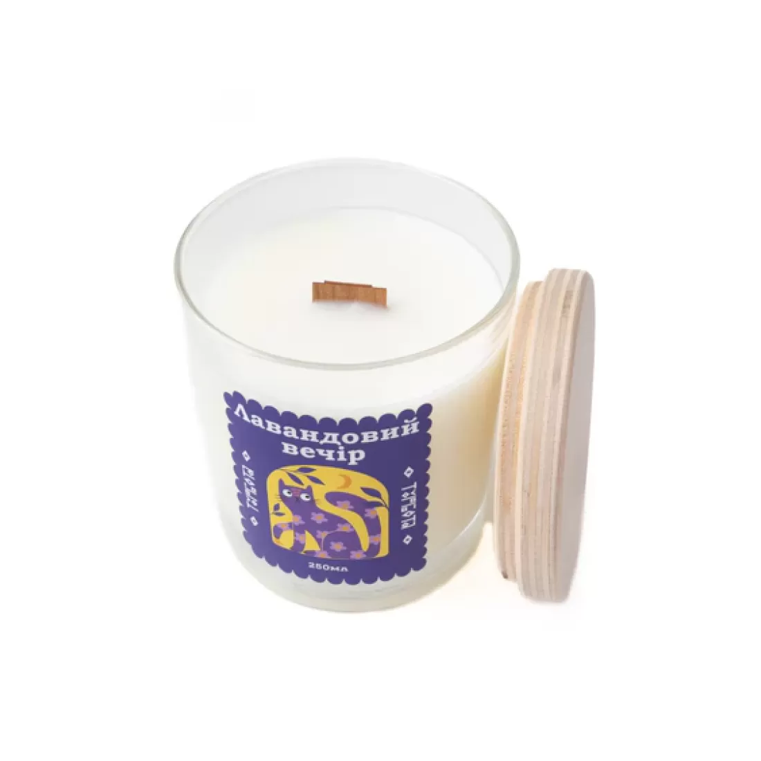 Лавандовий вечір» — свічка, що пахне спокоєм. Свіжий цитрус, ніжна лаванда та деревно-пудрова база створюють атмосферу тиші, легкості й внутрішнього відпочинку.