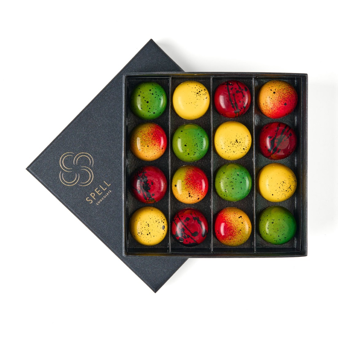 Набір фруктових цукерок у хрусткому шоколаді, карамель: ніжна полунична та фаворитка — солона. Плитки темного шоколаду з карамеллю та пряним мигдалем.