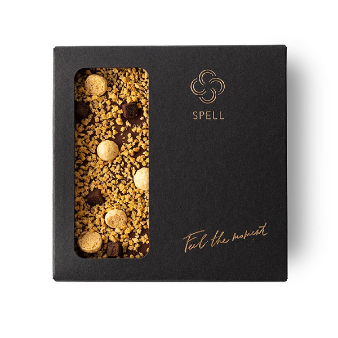 - Плитка з темного шоколаду з шоколадною карамеллю та карамелізованим мигдалем, 100 г