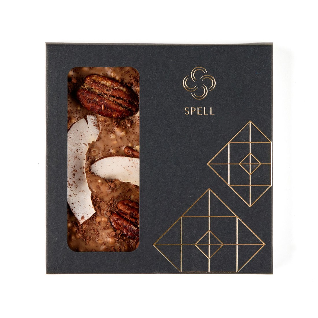 - Плитка з темного, білого шоколаду з карамеллю з пеканом та кокосом, 100 г
