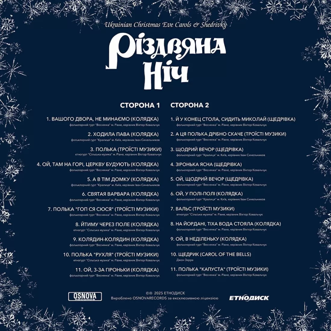 Платівка зібрала живі записи колядок і щедрівок, які десятиліттями лунали в українських селах і містах. Без сучасних аранжувань і технічних прикрас — лише справжній народний спів, збережений у первозданному звучанні.