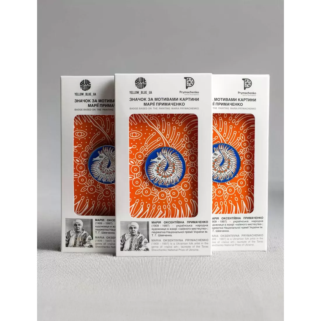 Лімітований металевий значок за мотивами розпису декоративної тарілки «ЗВІР-ПТАХ», створений в колаборації з фондом Марії Примаченко, відомої української художниці, пропонує унікальну можливість зануритися в її неповторний світ творчості.